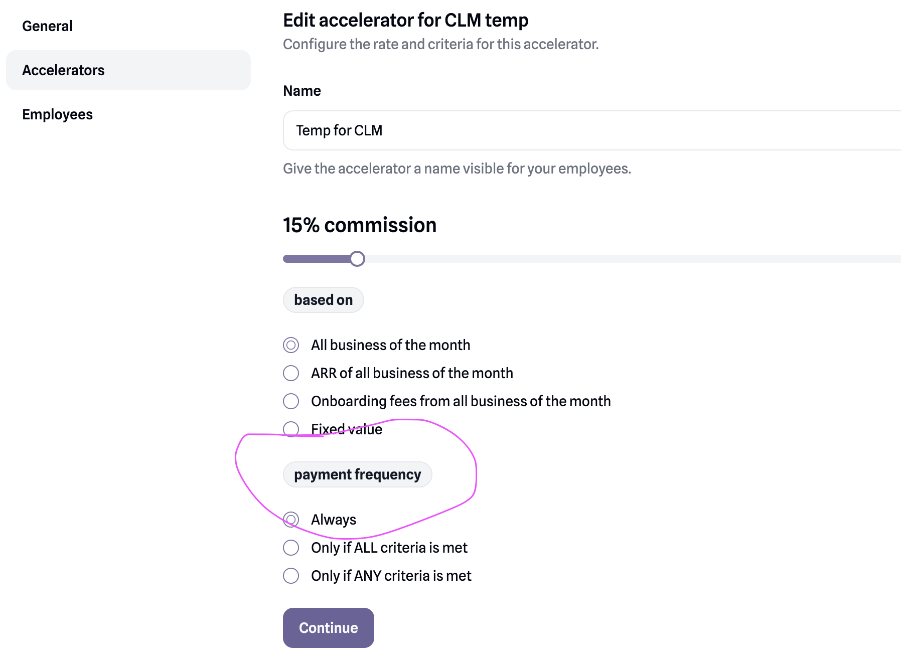Payment frequency should be called “payment criteria” or similar